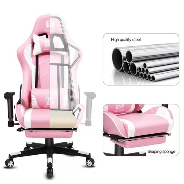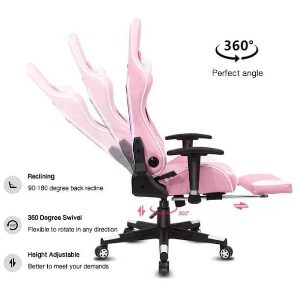 Clihome Reclining Pink Faux Leather Gaming Chair With Lumbar Support Wf01 Gc V2pk Sp